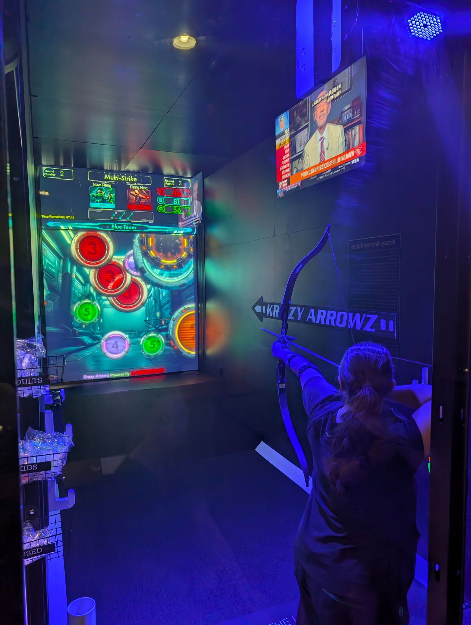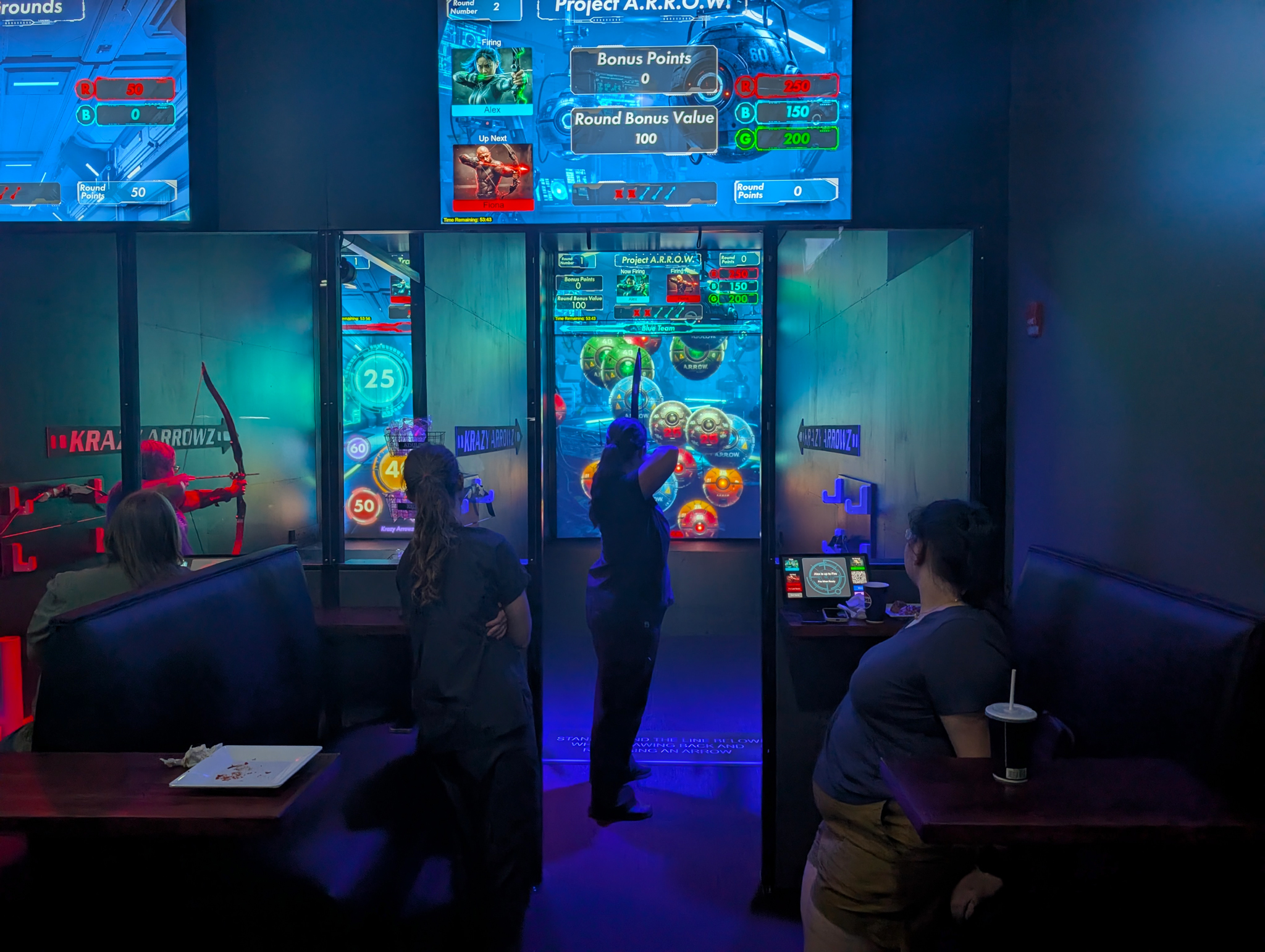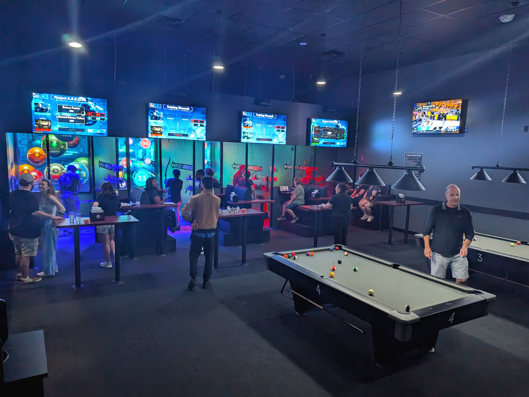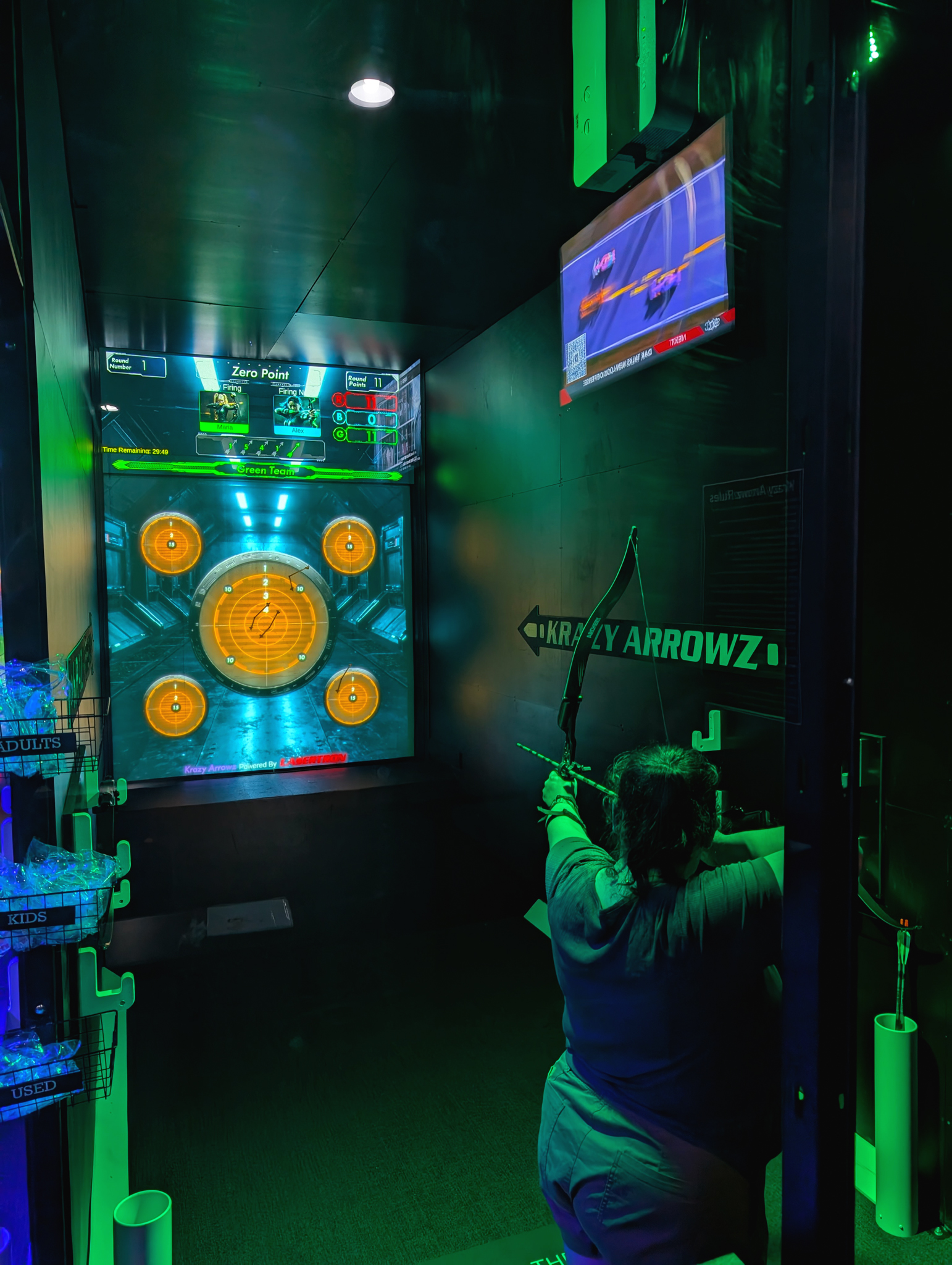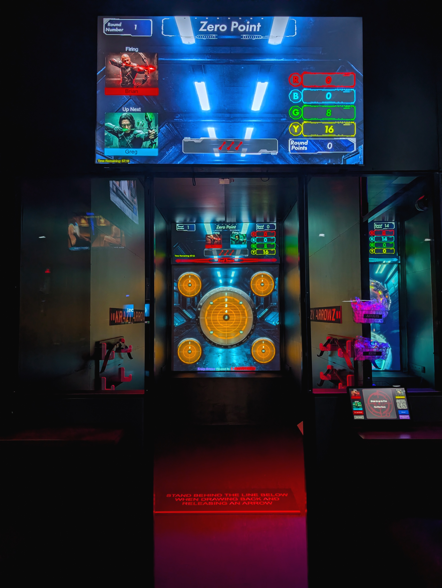 This groundbreaking attraction fuses live archery with fast-paced digital gameplay. Using real arrows, players will fire at a massive interactive screen loaded with games that test precision, speed, and strategy. From competitive team battles to trivia challenges, Krazy Arrowz delivers the thrill of real archery in a safe, high-tech environment. Whether you're a first-timer or a seasoned marksman, it's time to aim, fire, and go Krazy, only at LASERTRON.